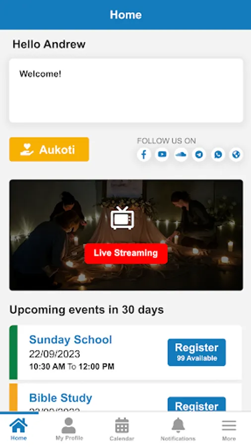 + sekti Jums aktualių parapijos renginių ir veiklų kalendorių;