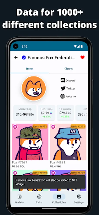 Track prices with NFT Widget!