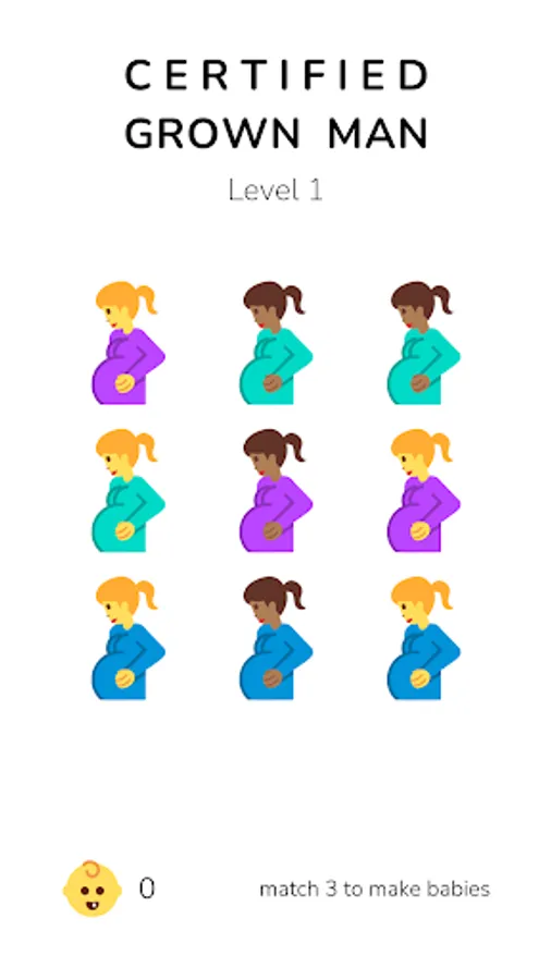 swipe and match 3 or more pregnant woman emojis to make babies