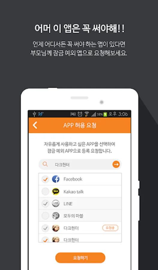 - Monitoring currently running apps and limiting further use if necessary: Identify which apps are displayed on the screen of the terminal you are currently using. If necessary, it detects the launch event of a specific app or disables it if an app that is harmful to your child is running.
