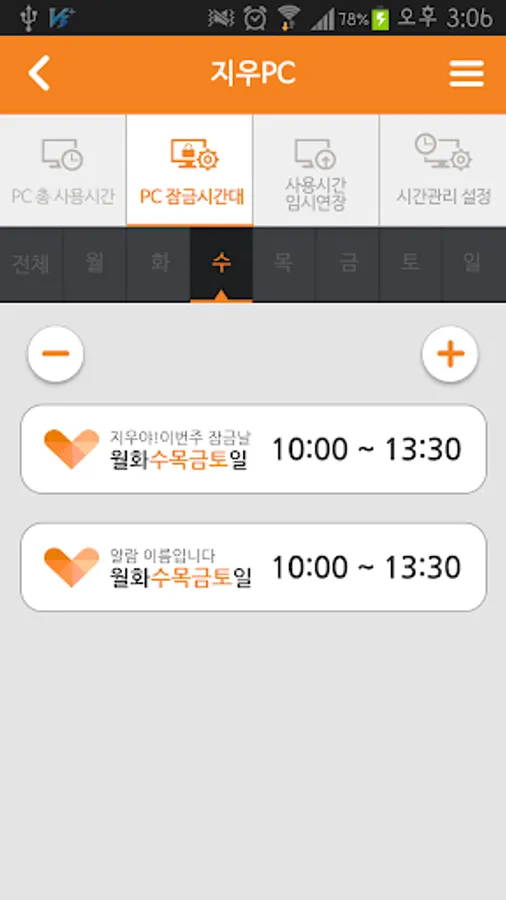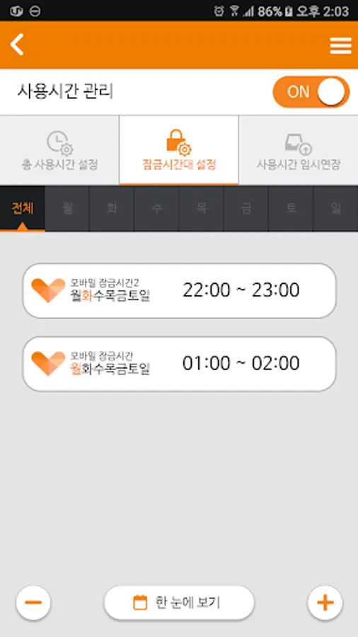 - Daily total usage time management: Set a daily usage time with your children and help them use only the set amount of time.