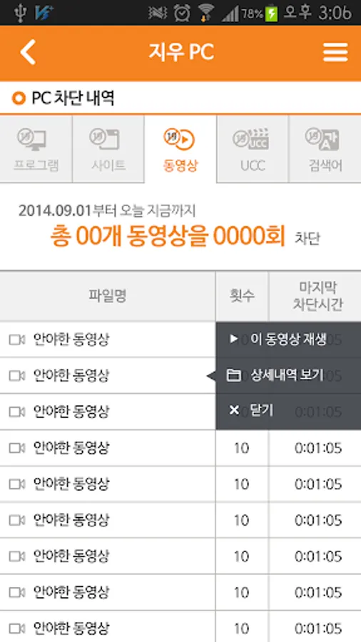 Now, with the smart management tool for protecting your child's PC, you can check reports such as harmful substance blocking history and PC usage history, as well as manage your child's PC usage time and change settings anytime, anywhere.