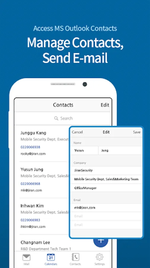 M@ILBiZ syncs with exisitng PC outlook settings for user to use email, calendar and contacts easily.