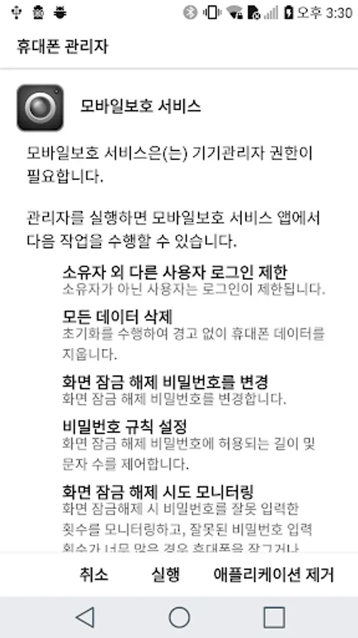This app uses device administrator privileges. This app can not be run by itself, and it must be used in conjunction with your company's security app. It is also not used for any other purpose and the following functions may be used according to the company's security policy. Your company's security policy can be found in your company's security app.