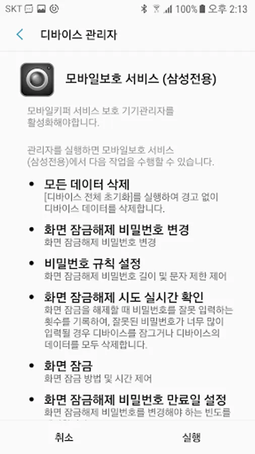 This app uses device administrator privileges. This app can not be run by itself, and it must be used in conjunction with your company's security app. It is also not used for any other purpose and the following functions may be used according to the company's security policy. Your company's security policy can be found in your company's security app.