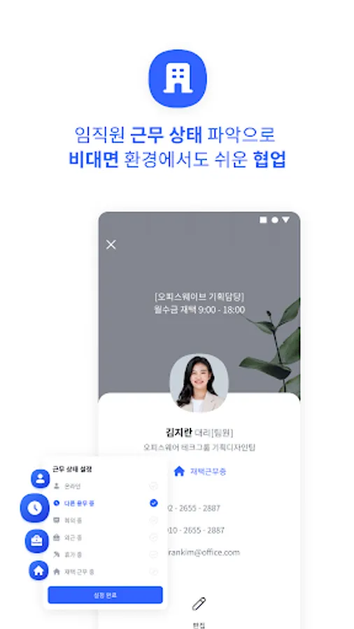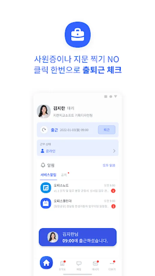 You can check attendance with a single click of the 'Come to Work' and 'Leave' buttons, and the manager can also check the attendance status of employees at once. In addition, by identifying the working status of employees at a glance, collaboration becomes easier even in a non-face-to-face environment.