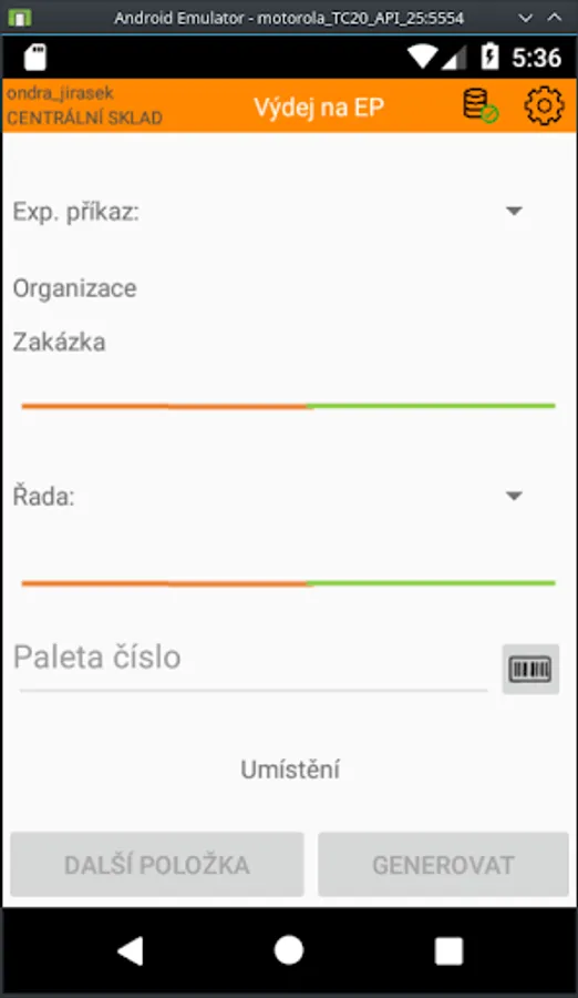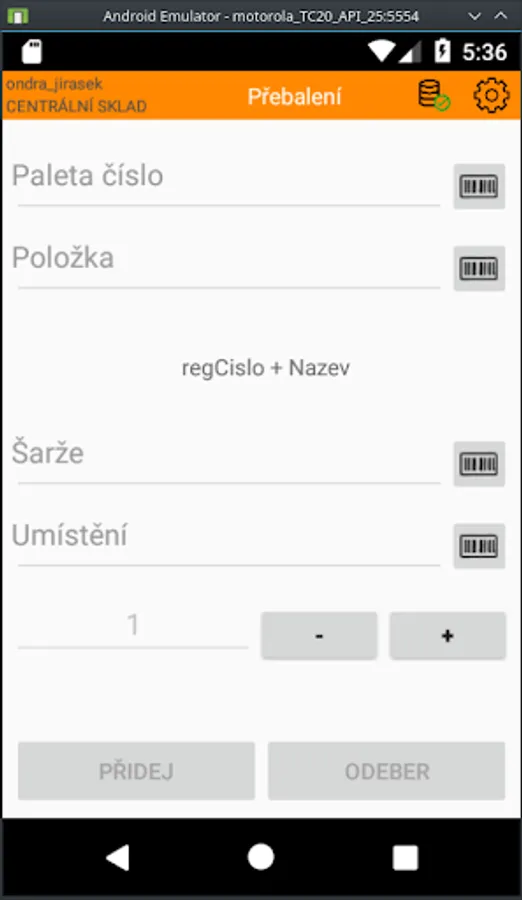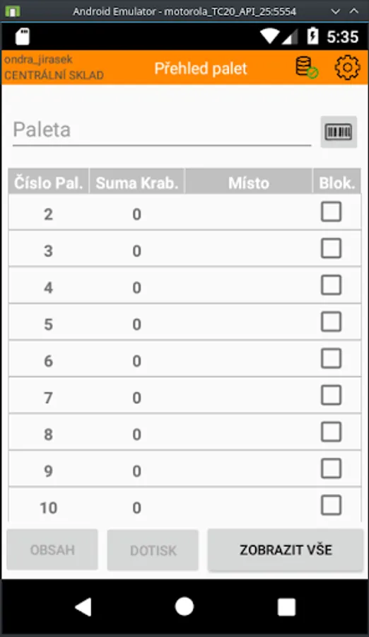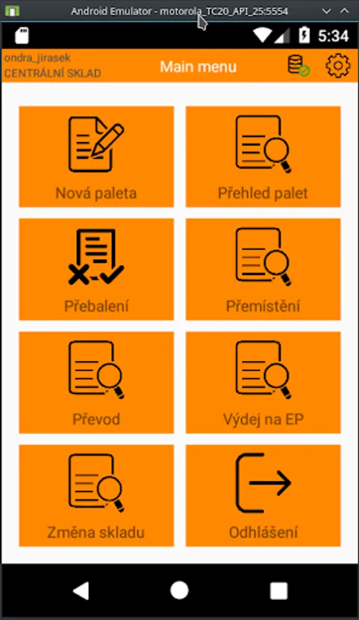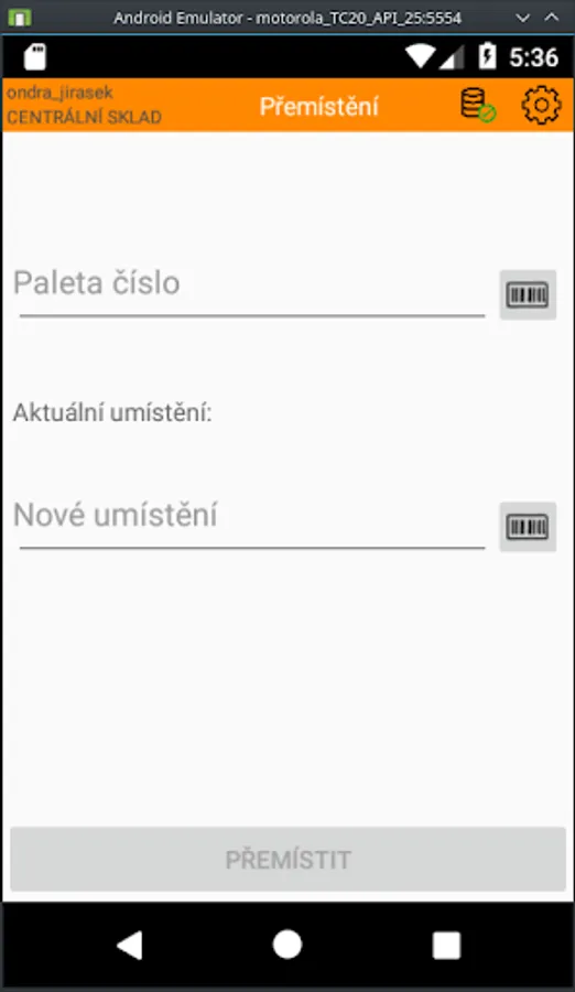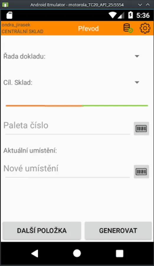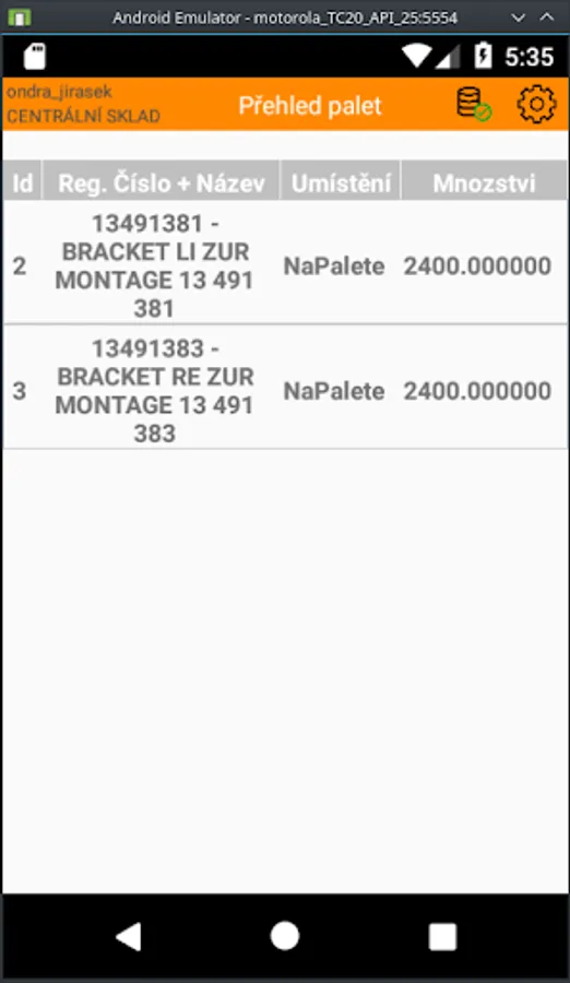 Android application linked to IS Helios Orange and WMS Gatema. The application should simplify the movement of whole pallets on documents of the information system.