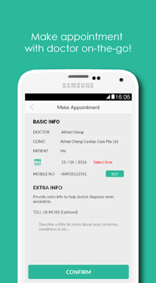 6. Make an appointment with the doctors by tapping on their available time slots in the application.