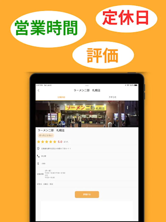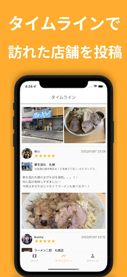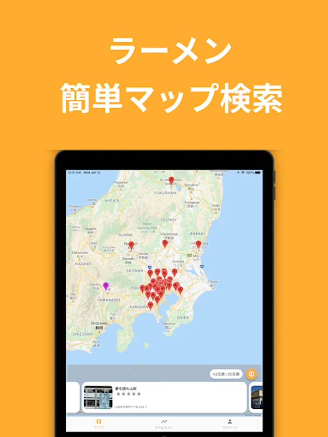It is an application that allows you to search for nearby shops from the map and post reviews.