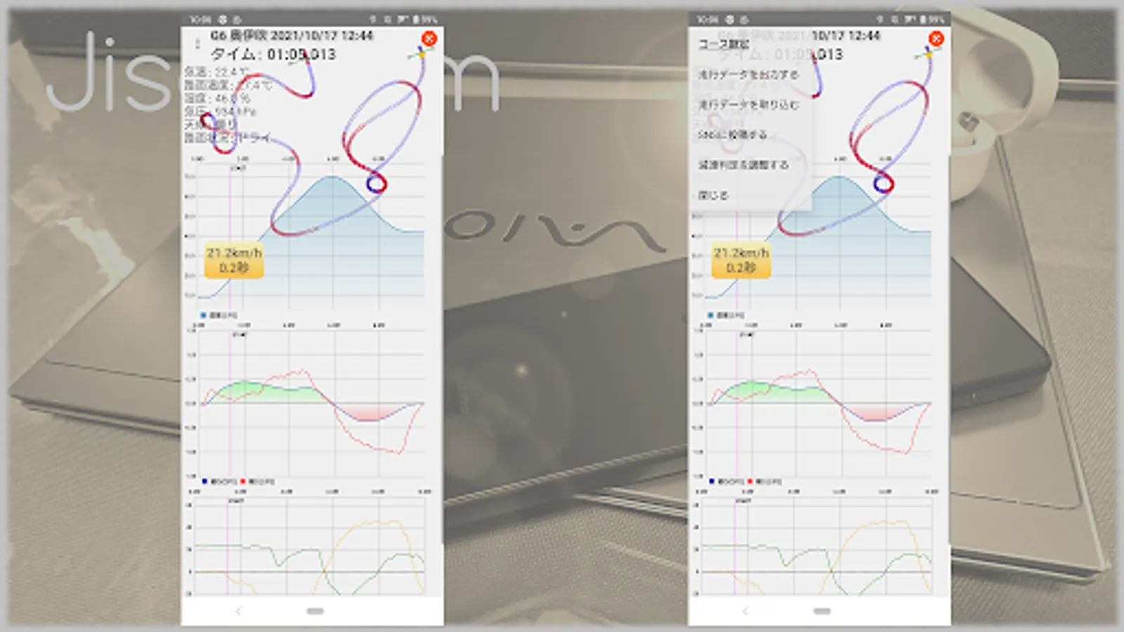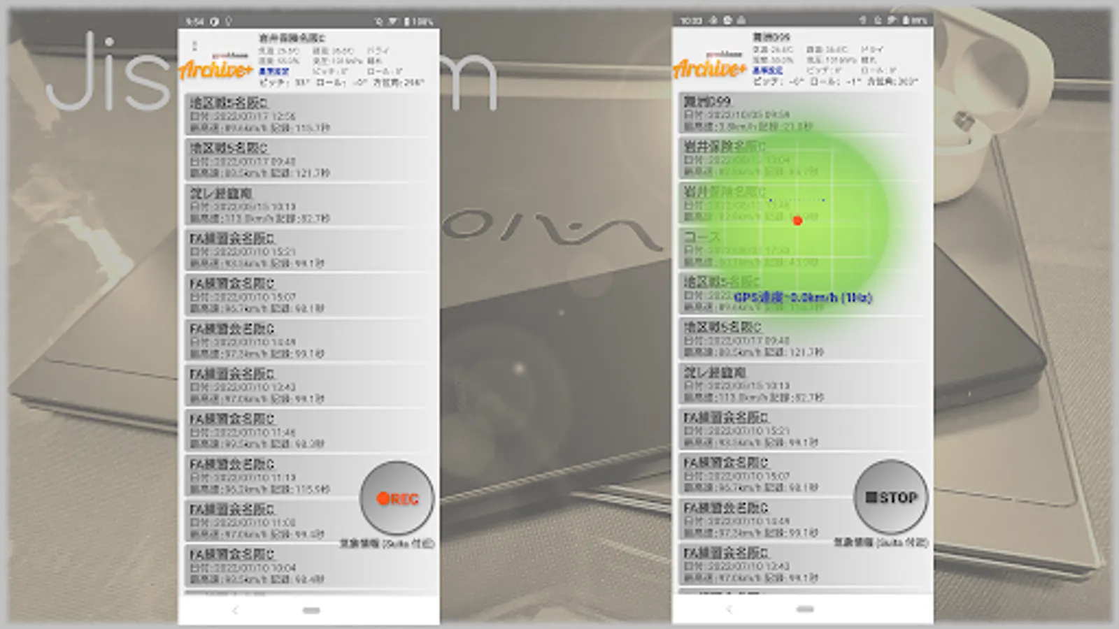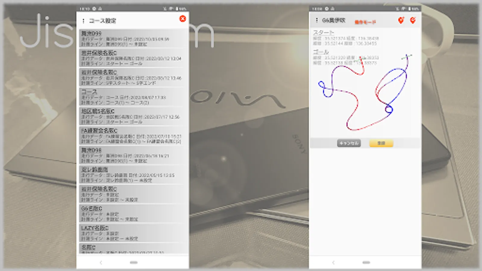 It is an application that records GPS position information and driving data such as speed,acceleration,roll,pitch,and temperature,humidity,road surface temperature,weather,road surface condition,and atmospheric pressure during driving for motor sports. The usage is here .. The recorded data can be checked on the viewer by combining the running trajectory with information such as speed,acceleration,pitch and roll. For temperature,humidity,and weather,weather information can be acquired and automatically set using the Internet (cancellation option function). The temperature and humidity can be set automatically in cooperation with the SwitchBot thermo-hygrometer. It can be edited directly by clicking on temperature,humidity,road surface temperature,weather,road surface condition,and barometric pressure. By connecting an external GPS sensor other than the built-in GPS as a pseudo-location service,it is possible to record a driving track with higher accuracy than the built-in GPS (DG-PRO1 is recommended). To select a course,tap Course (course name) to display the course selection screen,so select the course (course registration is required in advance).In the course registration,the measurement line can be set using the driving data (editing of the measurement line is a cancellation option function). By setting the measurement line,you can use the time measurement and the automatic measurement start function that starts measurement after passing the measurement line. Driving data,course,and measurement line can be deleted by swiping left.