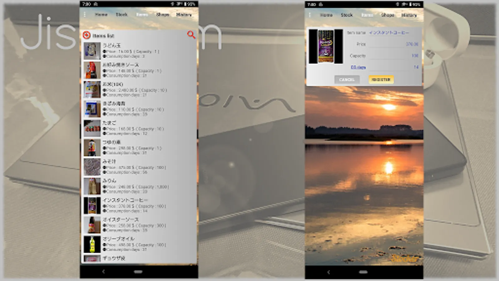 It is an application that calculates the consumption amount and purchase cycle of household stock items such as foods and daily necessities that need to be purchased regularly, and recommends items that need to be replenished (purchased).The usage is here .. To replenish stock items, the items with low stock will be listed on the home screen, so if you flick the item to be replenished downward, it will be added to the list of purchase checks.You can replenish items with low stock by flicking from the list, items added to the purchase check list by flicking down to +1 and flicking up to -1.You can directly enter the number of replenishments and the purchase price by clicking on the item added to the list of purchase checks.You can directly enter the number of replenishments and the purchase price by clicking on the item added to the list of purchase checks.Items that have been checked for purchase will be automatically reflected on the stock screen when the date changes. If you want to reflect it on the stock screen immediately, execute the purchase check confirmation process in the action menu.For stock replenishment, you can enter the quantity directly in the purchase check or stock management.For the amount of consumption, enter the number of days consumed per stock or the number of times consumed per day in item management.The consumption of stock of stock products is calculated based on the number of days that have passed since the last replenishment or stock confirmation date in stock management.By registering the location information of the purchasing store on the shop screen, the nearest shop to the current location can be automatically selected and recorded as the purchasing store.On the purchase history screen, you can check the purchase date, purchase quantity, purchase price, and store for each item.