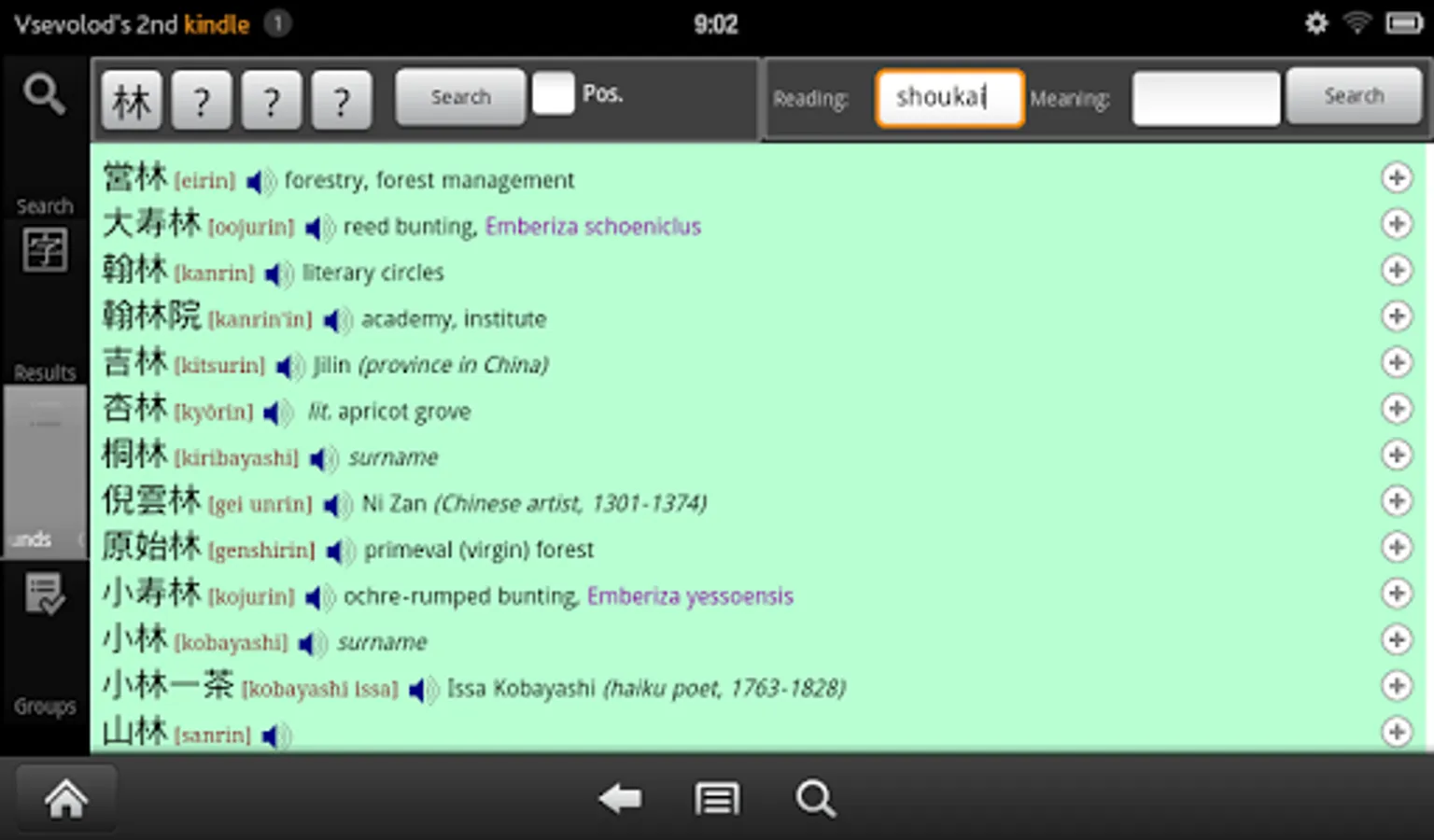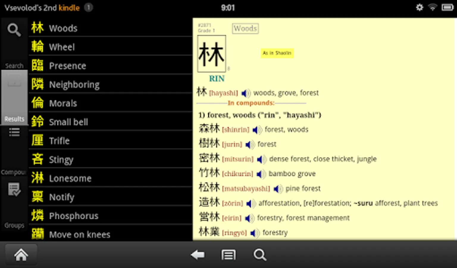JiShop is a Japanese-English kanji and compound word dictionary. Focus on handwritten input and on radical-based kanji search, but you can also find kanji by reading (ON/KUN) or English translation.