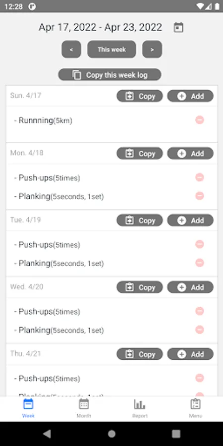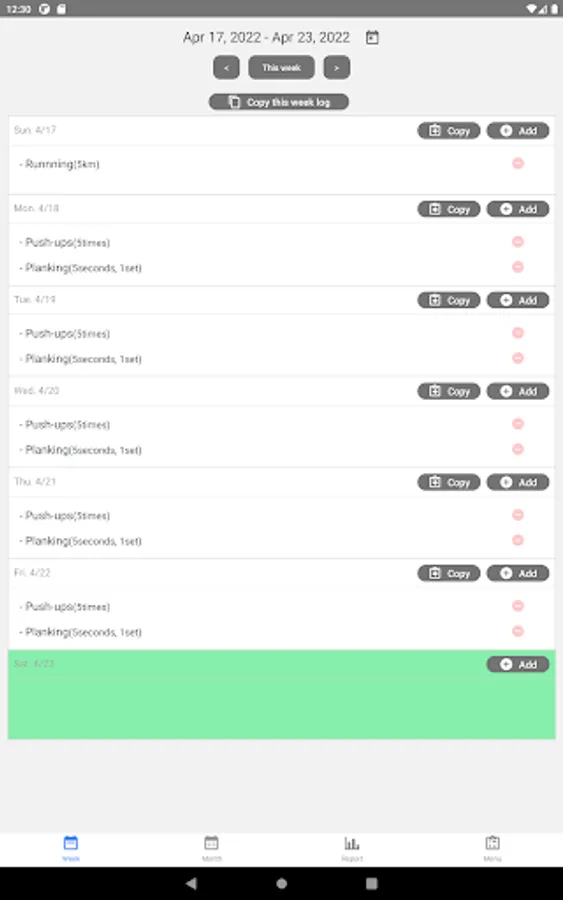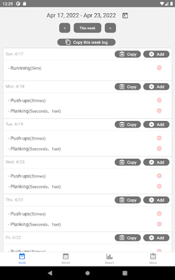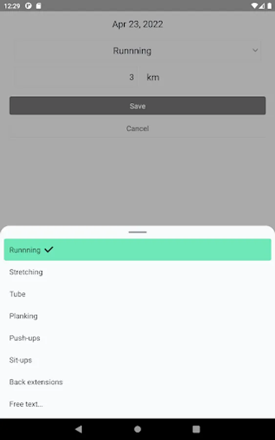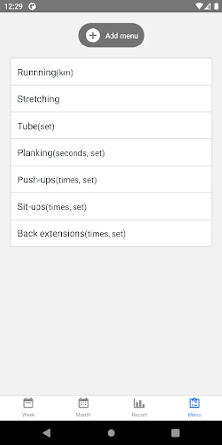 -Recording daily training. There are two methods, one is to select the menu registered, and the other is to enter text.
