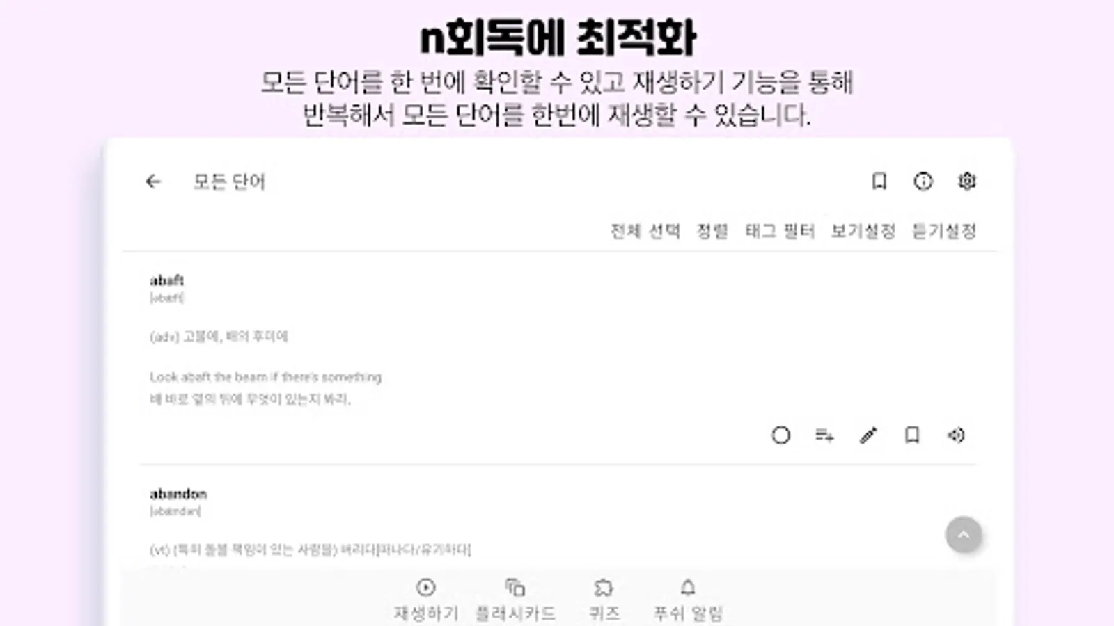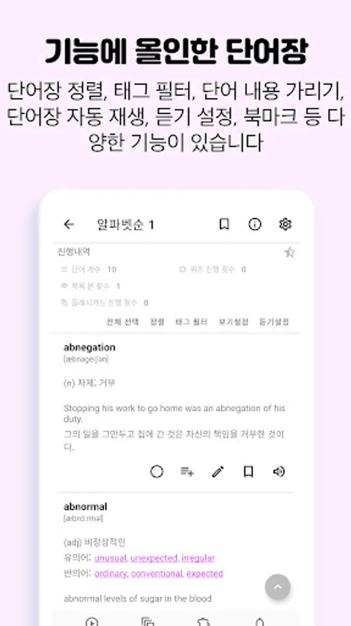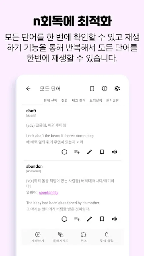 You can listen to English examples, interpretations of examples, and synonyms and antonyms.
