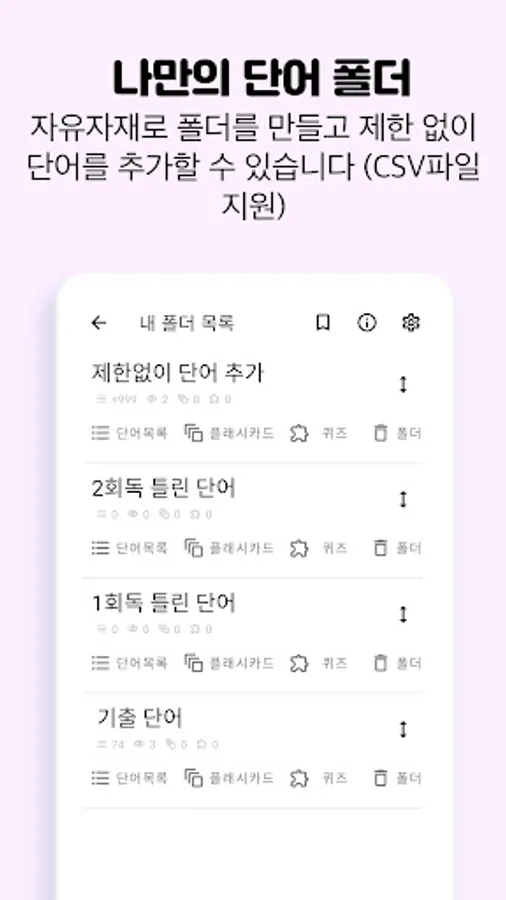 ✅ Free word folder creation, unlimited word addition (can be entered as CSV)