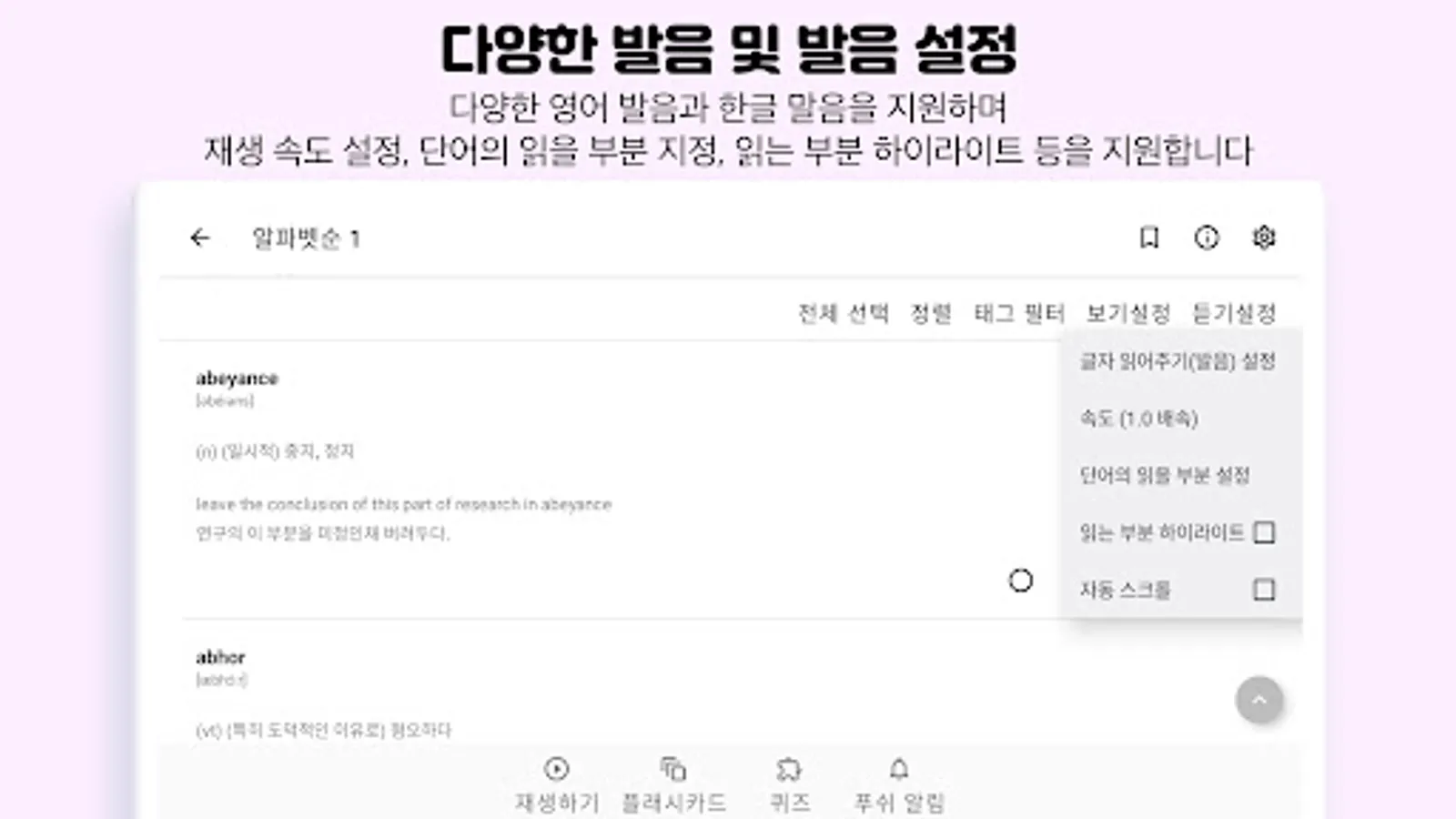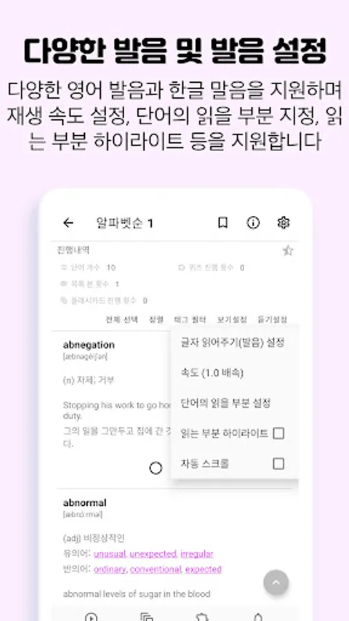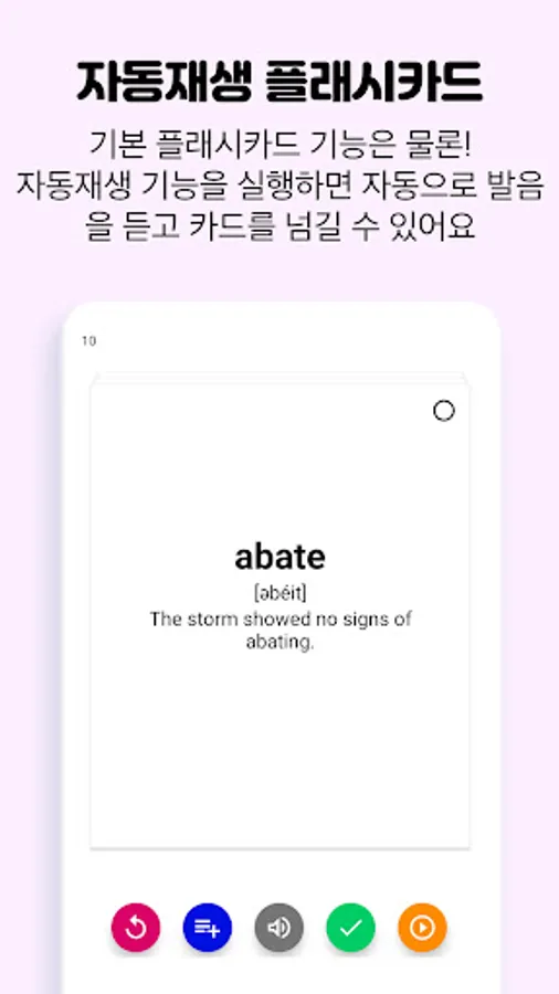 The GMAT English word app supports the autoplay function that automatically tells the vocabulary.