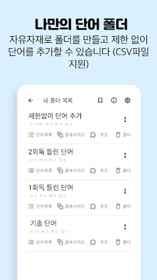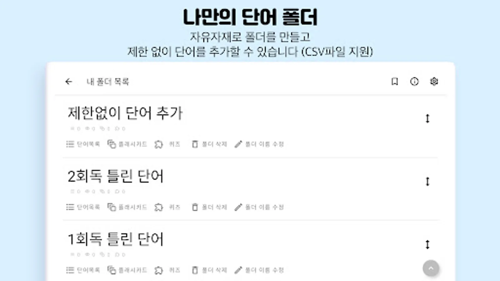 ✅ Free word folder creation, unlimited word addition (can be entered as CSV)