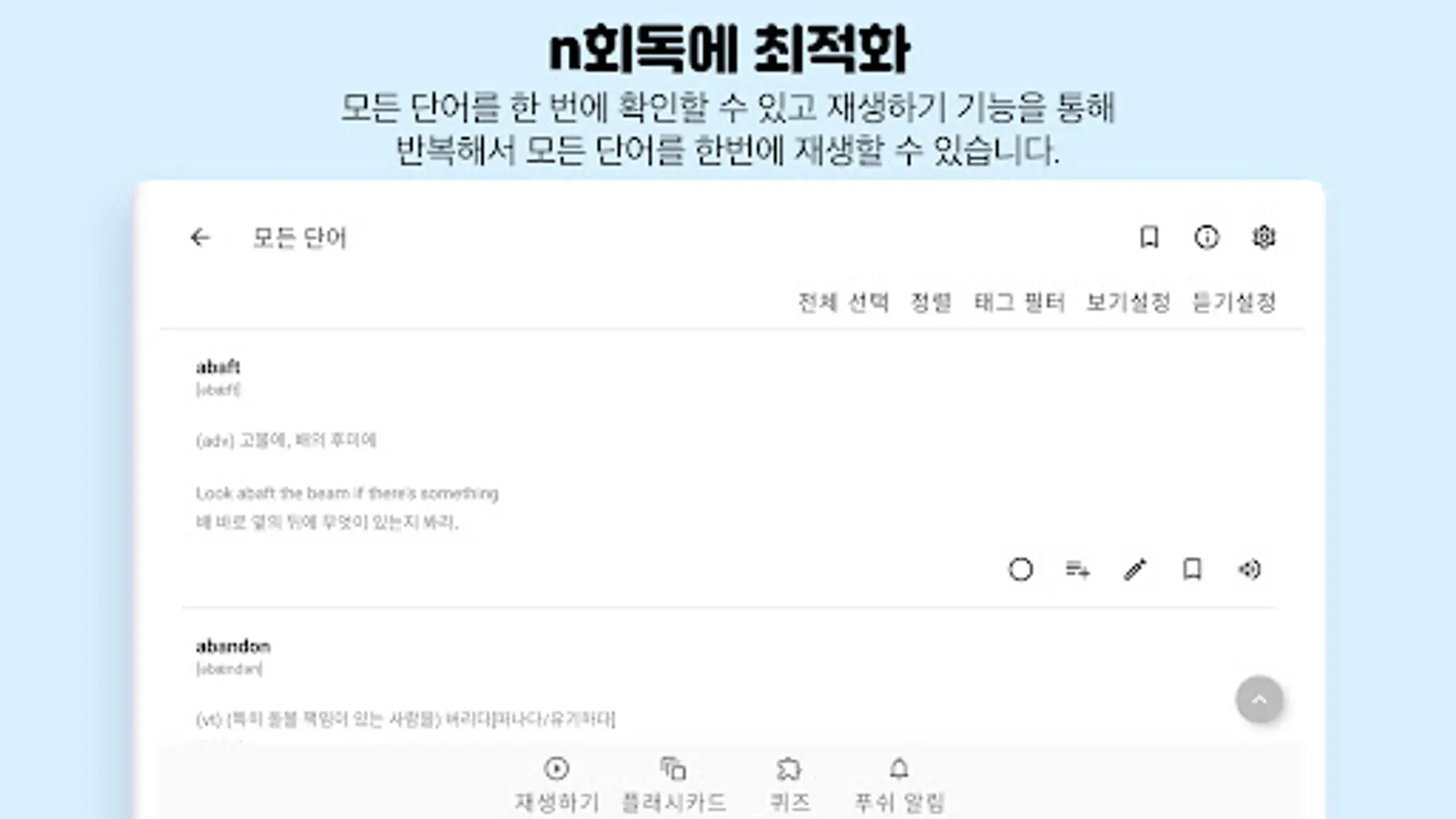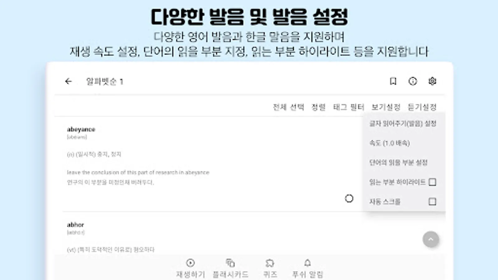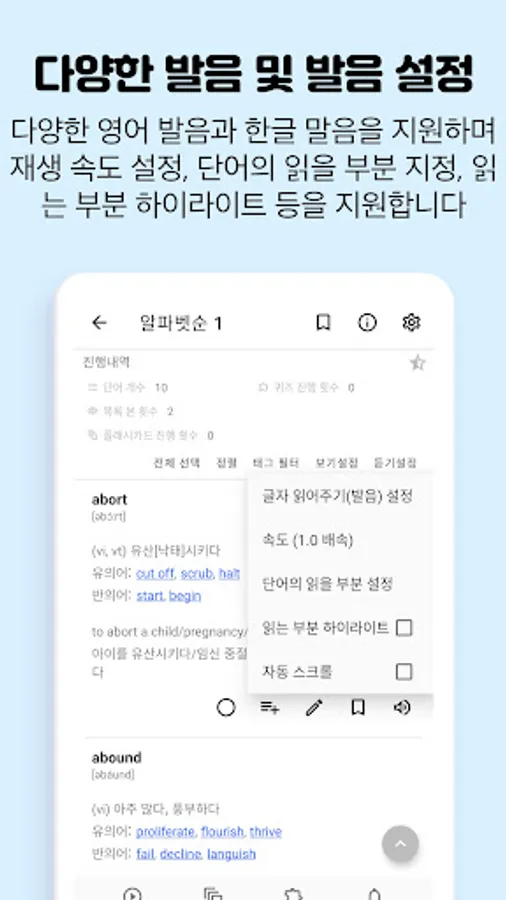 The official English word app supports the auto-playback function that automatically tells the vocabulary.