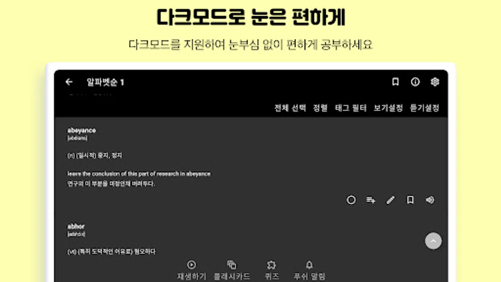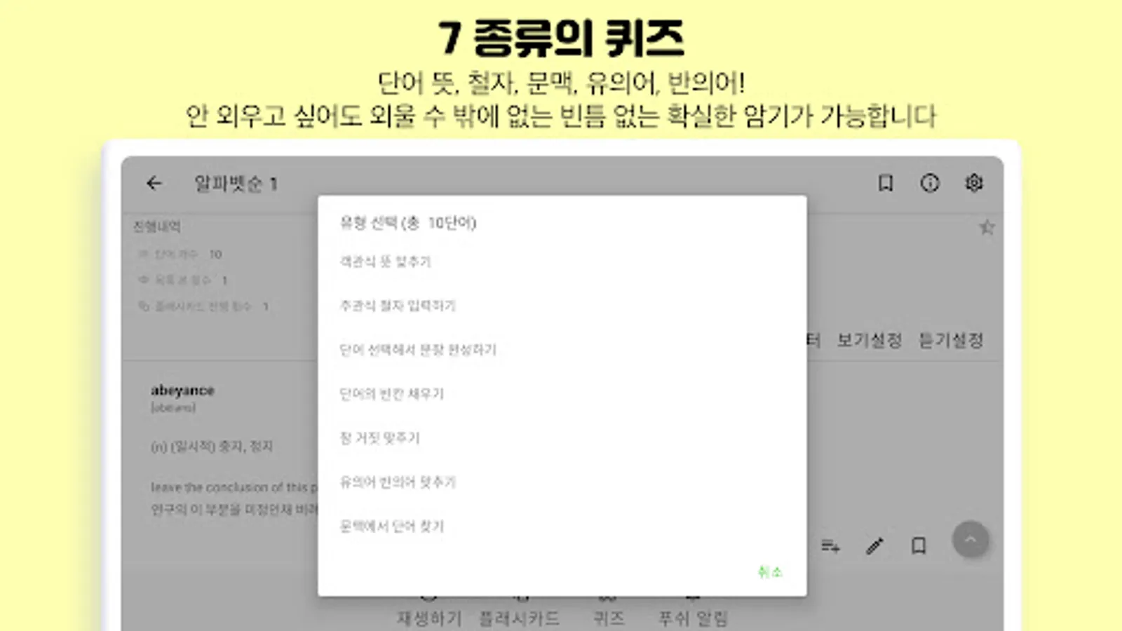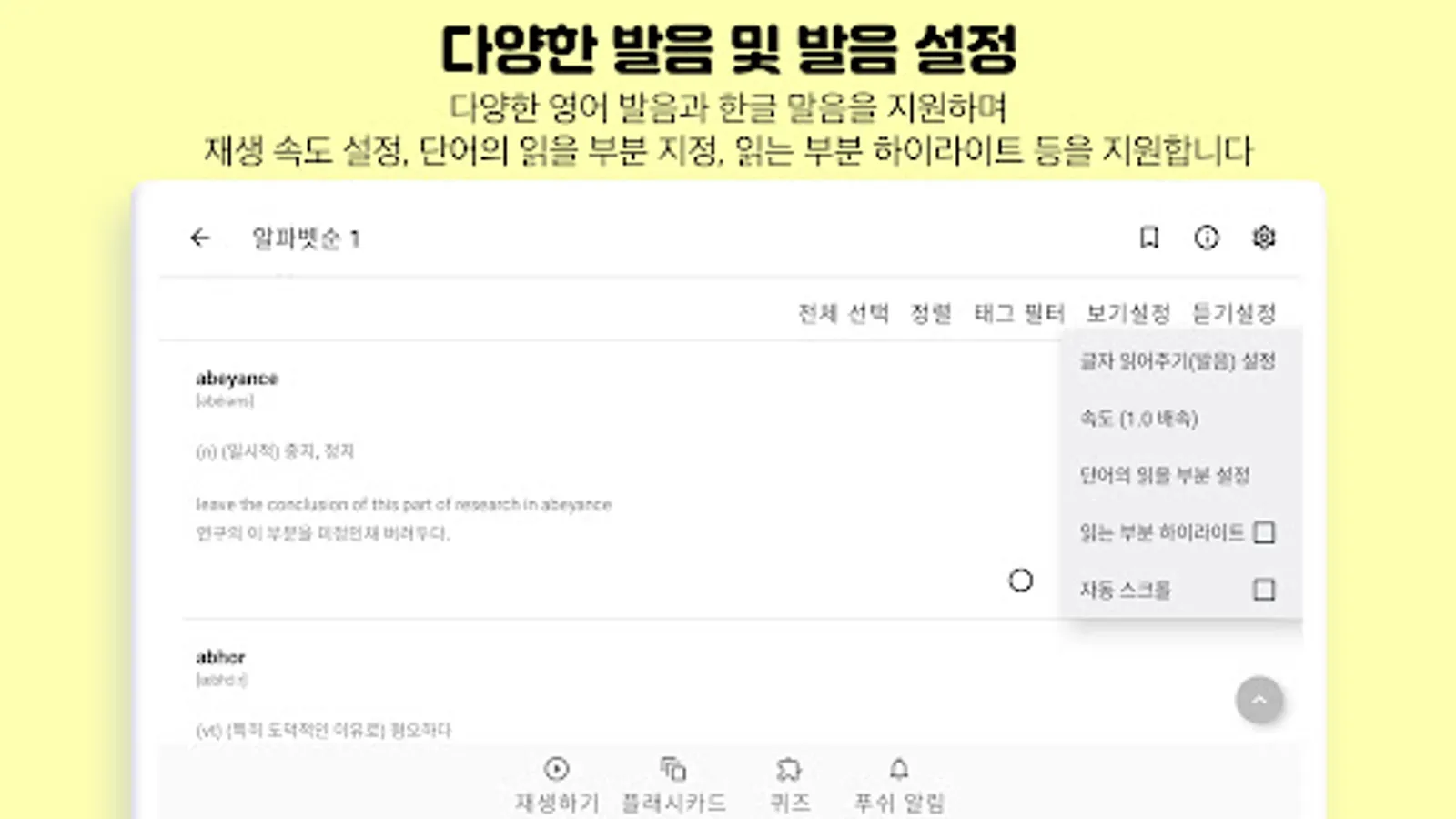 Simply listen to English letters and Korean meanings