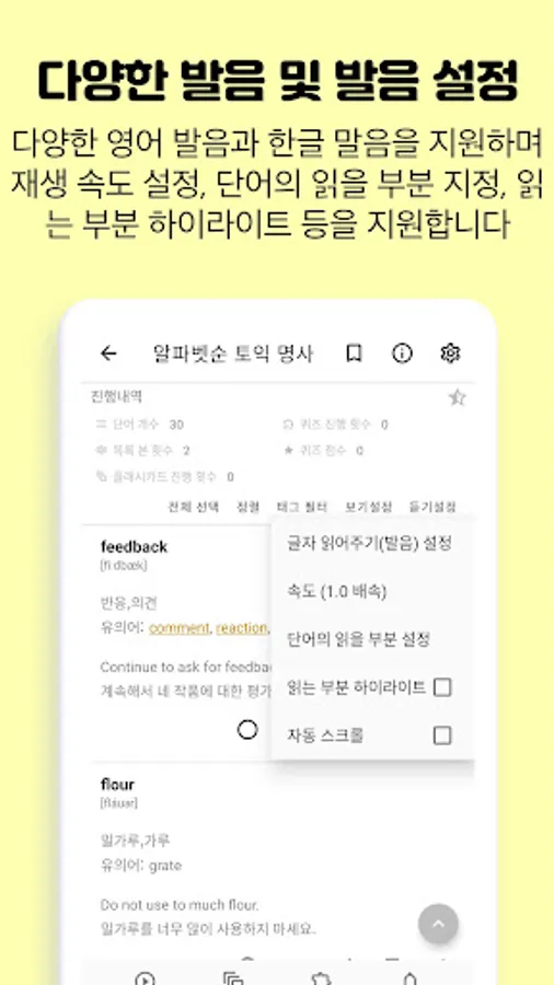 Basic English vocabulary TOEIC English vocabulary app supports auto-playback function that automatically tells the vocabulary