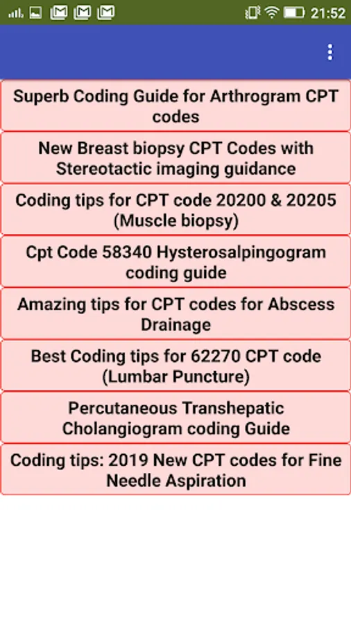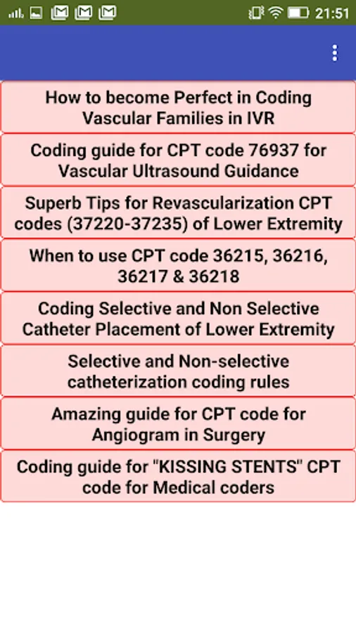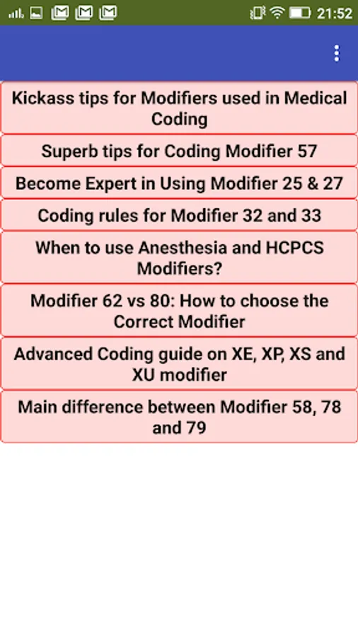 Hello medical coders, this is one of the best application to get all the unique coding tips about CPT and ICD 10 codes. You will get coding information about different procedure codes and when to use them. You will also learn about modifiers, which play an important role in medical coding. Finally, I have share some articles for preparation of medical coding certification exam. These articles will surely help to prepare you for coding certification exams conducted by AAPC and AHIMA.