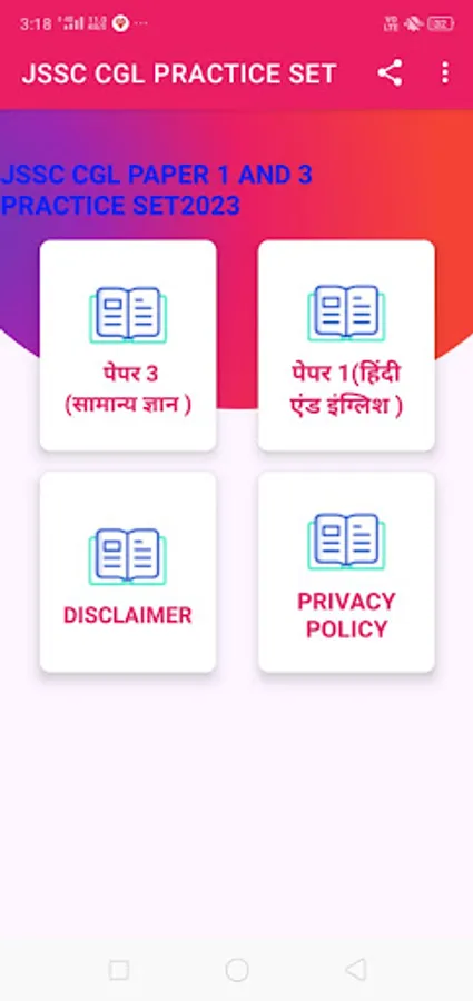 THIS APP CONTAINS MODEL PRACTICE OF JSSC CGL 2023 EXAMINATION .IT CONTAINS PAPER 1 LANGUAGE PAPER HINDI AND ENGLISH AND PAPER 2 SAMNYA GYAN WITH DETAILED ANSWERS .