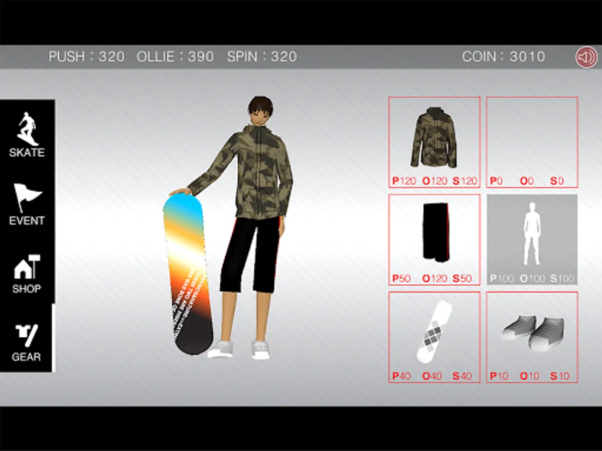 The app assigns detailed scores to your tricks based on how cool they are. It evaluates your height in the air, speed, number of spins, and number of combinations as the basic criteria, and then takes into account your landing skills, use of the park, and level of difficult of the tricks.