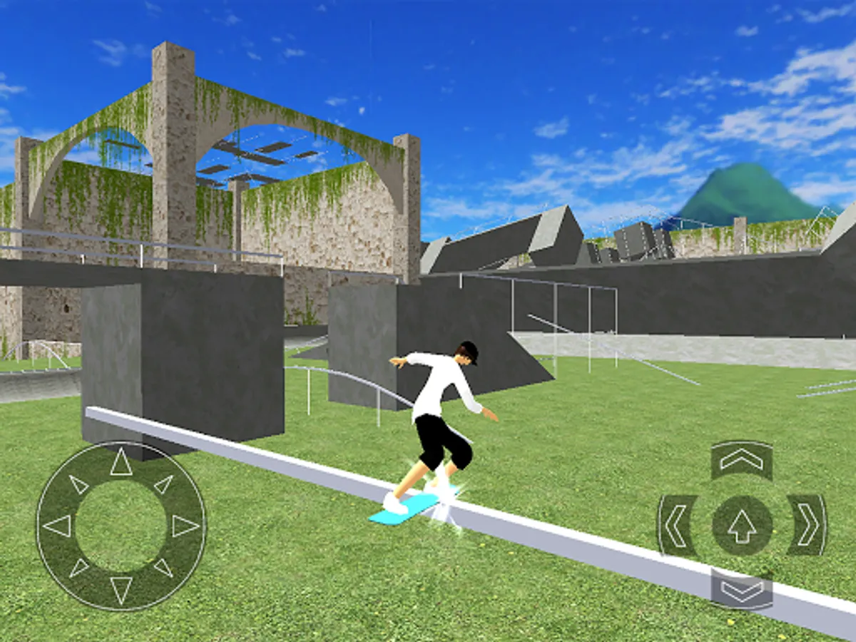 A 3D game where you skate around a skateboard park on a snowboard. Jump around a variety of parks as you do dynamic air and rail tricks.
