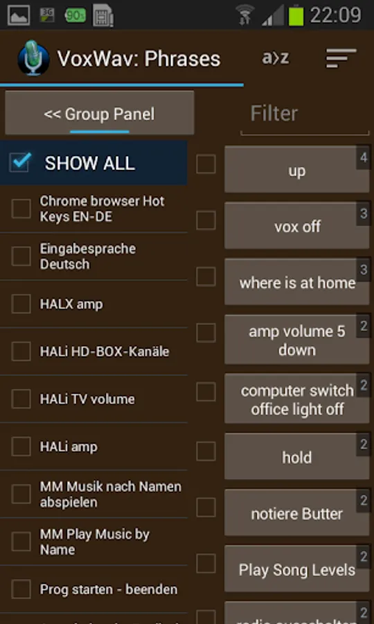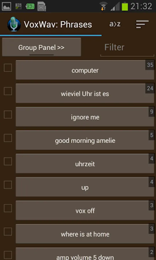 - Remembers commonly used phrases which can be used as buttons. These can be sorted by frequency or alphabetically.