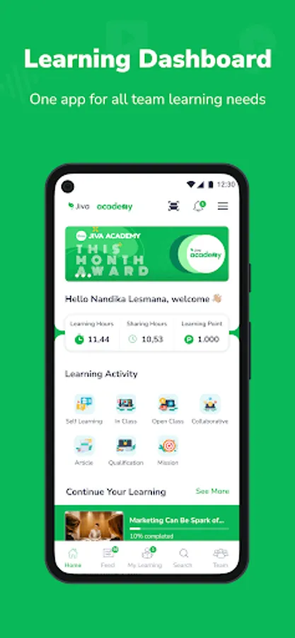 Learning becomes limitless, wherever, whenever, because we can directly access JivaAcademy from your Smartphone. Then, it's easy to use, just select the training you want, click, and you can start the session.