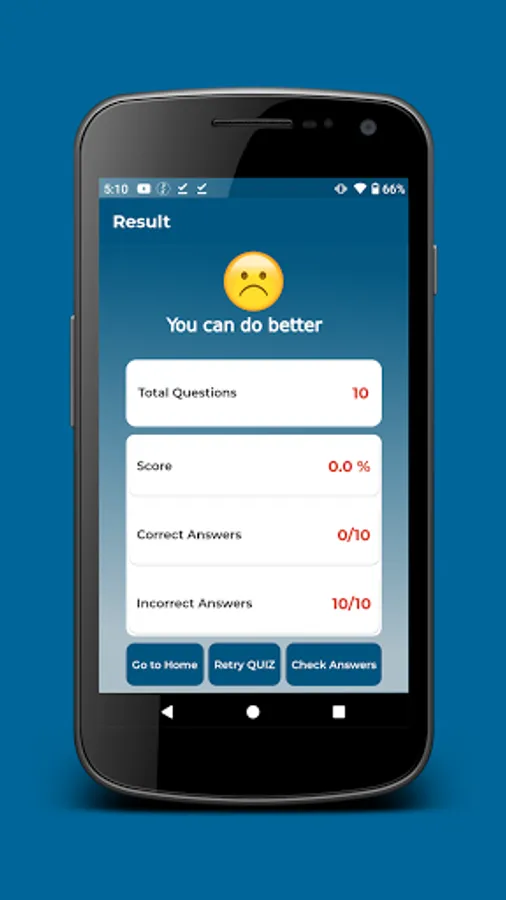 • The result page is displayed at the end and, based on your score you get different emojis.