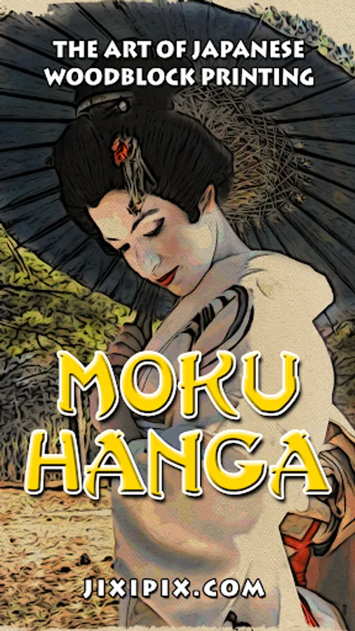 You've discovered the fascinating art of Moku Hanga, the Japanese method of wood-block printing. Breathtaking landscapes, beautiful women, and busy cityscapes can be transformed into this exotic art known for flowing hand-chiseled outlines and brushed on color.