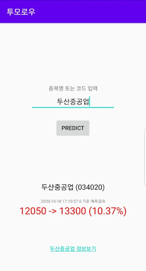 투모로우 - 초간단 AI 내일의 주가 예측 검색기 Screenshots