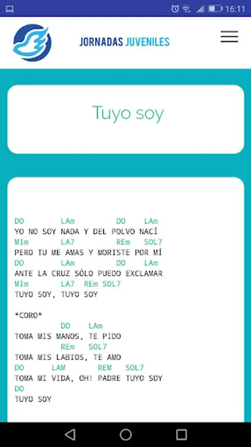 The Jornadas Juveniles app is a digital songbook, in which you can search for songs with filtering for greater efficiency, consult guitar or ukulele notes, read the guide on how to play songs at mass, download the songbook in PDF, among other things.