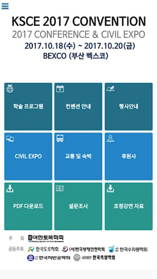 Sponsor: Ministry of Transportation, Busan, K-water, LH, Korea Highway Corporation, Korea Rail Network Authority, Korea Infrastructure Safety Authority, Ministry of Land, Infrastructure and Transport Science and Technology Association, Korea Federation of Science and Technology Societies