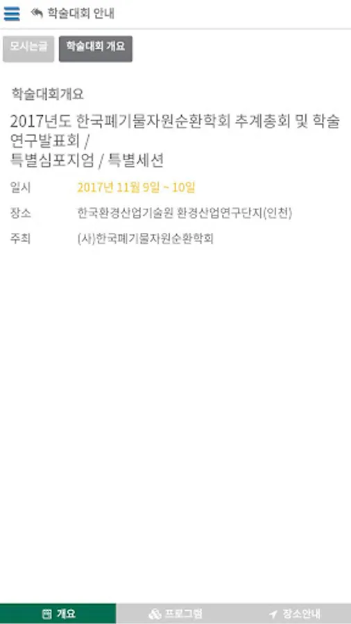 학술대회안내: 개요, 프로그램, 장소안내