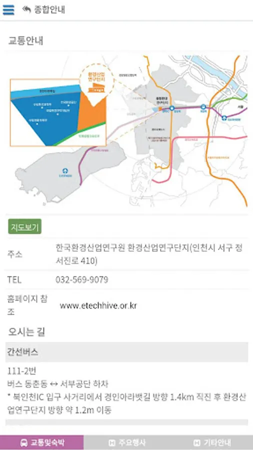 종합안내: 교통및숙박, 주요행사, 기타안내