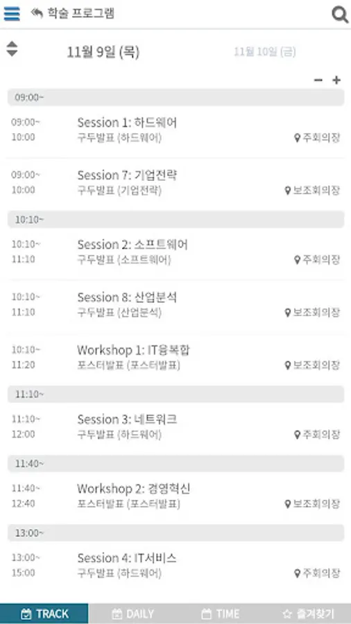 학술프로그램: Track, Daily, Time, 즐겨찾기