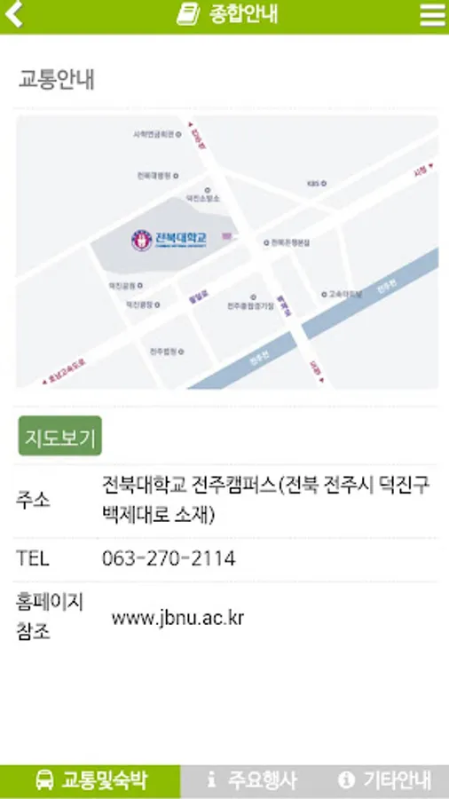 종합안내: 교통및숙박, 주요행사, 기타안내