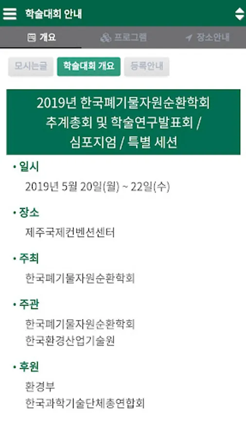 2019년 한국폐기물자원순환학회 추계총회 및 학술연구발표회 / 심포지엄 / 특별 세션