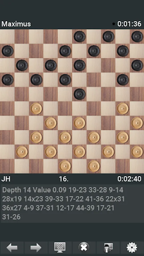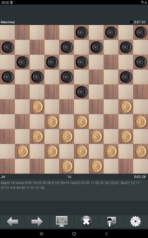 You don’t have to be an expert player to enjoy Maximus, however, as there are many levels of difficulty. Starting with a level to explore the rules of the game, at which Maximus always plays a random move. Then there are ten training levels, from beginner to expert, that you can try before you start giving Maximus more time to think. Improve your play by analyzing your games with Maximus and learning from your mistakes. You can also use the program as a draughts travel set or as a draughts notation booklet, or even in your draughts competition if you are one player short!