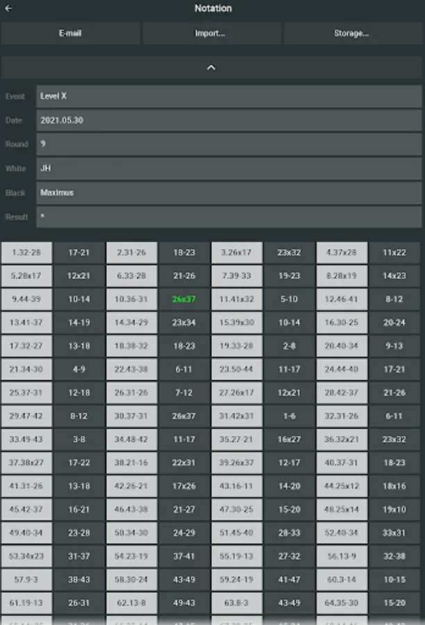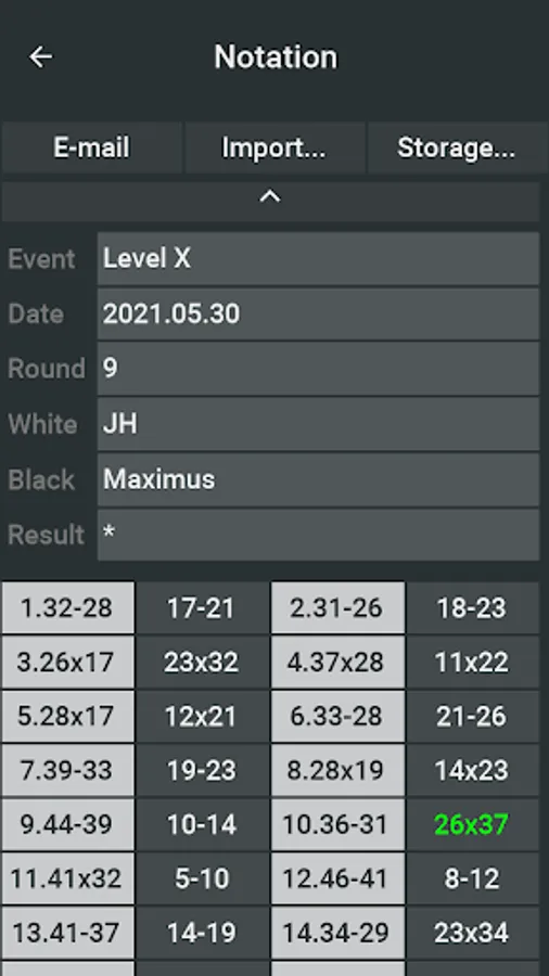 * Save, load, e-mail and import games and positions in Portable Draughts Notation format (PDN)