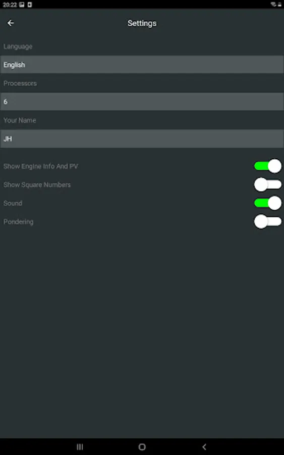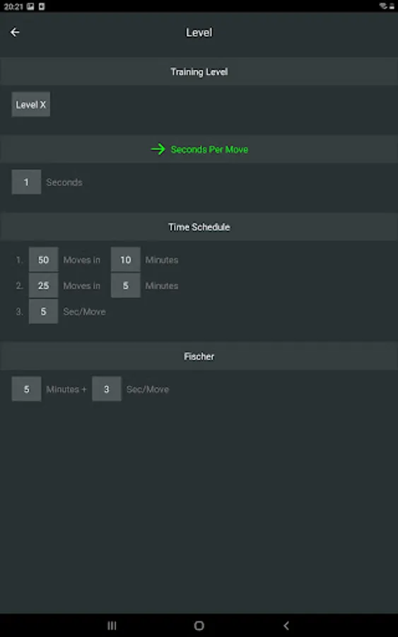 * Strong engine with 4 playing modes: 1) rules of the game plus 10 training levels; 2) seconds per move; 3) time schedule; 4) Fischer system