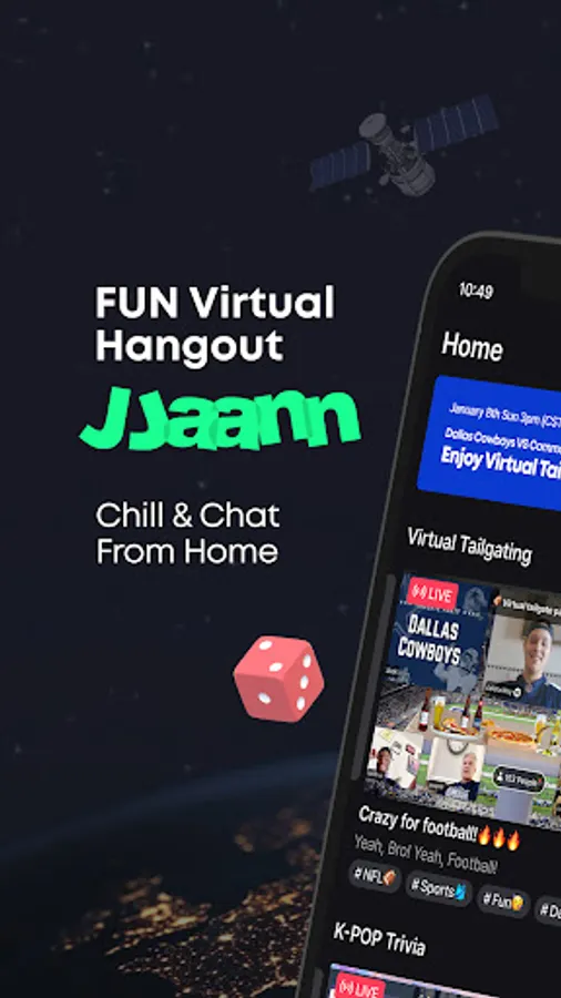Are you tired of not finding someone to hang out with when you're free? JJAANN has got you covered! You can find live video chat rooms on almost any topic with the biggest in Kpop and sports (NFL, NBA). In our Kpop community, there are many fans of BTS, Blackpink, Super Junior, Stray Kids, and more. In our sports (NFL, NBA) community, there are many fans of Dallas Cowboys and Philadelphia Eagles. Engage in fun conversations on BTS, NFL, NBA with other fans, play Kpop or sports trivia game together, and who knows, you might even make new best friends!