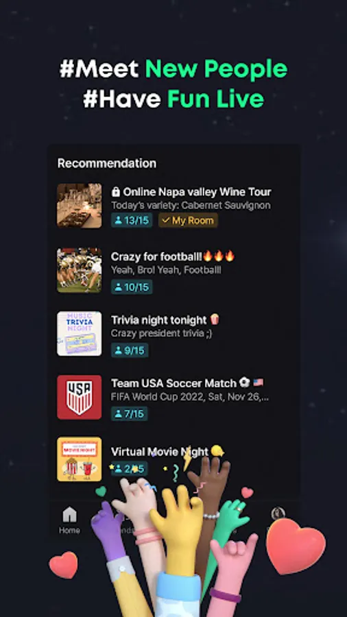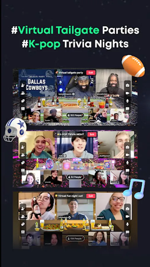 Join the fastest-growing global online community and chat about your passion! We have a variety of hangout for you to explore, from Kpop including BTS, TXT, Super Junior, to sports including NFL, NBA, and more. You can also create your own hangout and invite friends.