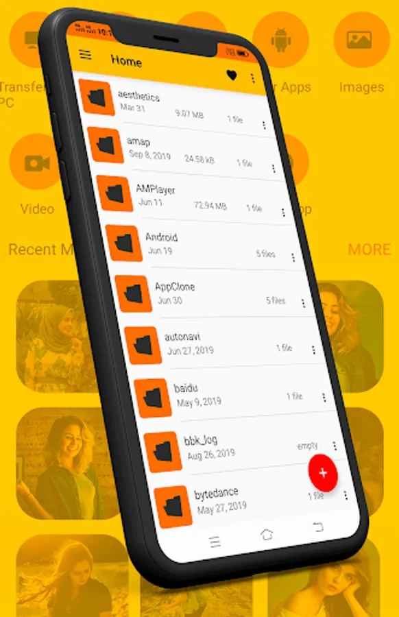 - Files are organized into categories by their formats. From there, you can access frequently used apps quickly.