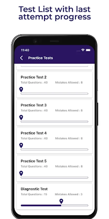 Users can track their progress to focus their studying on the areas. Tracking progress is made effortless as the app allows users to monitor completed practice tests, identify areas requiring more attention, and measure overall improvement.