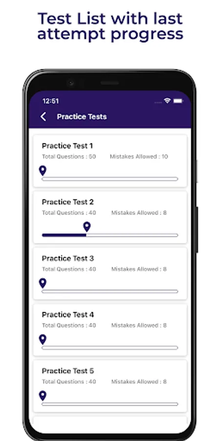 Users can track their progress to focus their studying on the areas. Tracking progress is made effortless as the app allows users to monitor completed practice tests, identify areas requiring more attention, and measure overall improvement.