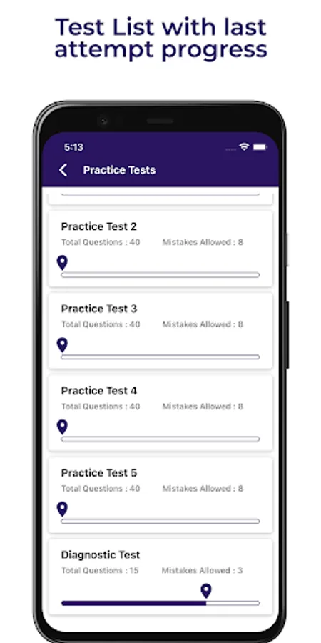 Users can track their progress to focus their studying on the areas. Tracking progress is made effortless as the app allows users to monitor completed practice tests, identify areas requiring more attention, and measure overall improvement.