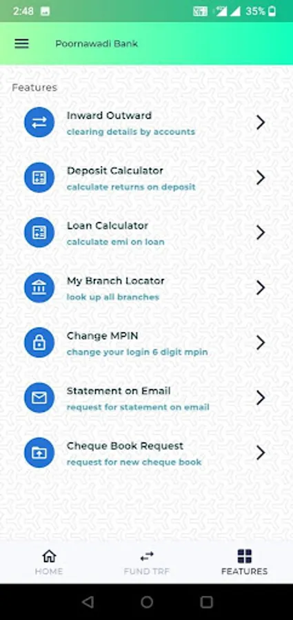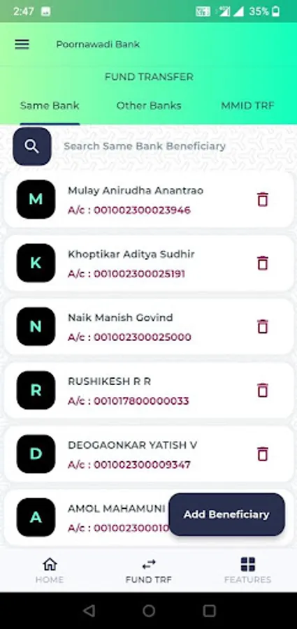 Mobile app for the account holders of Poornawadi Nagarik Sahakari Bank M.Beed which allows account holder to perform various banking transactions such as IMPS payments,NEFT Payments etc.